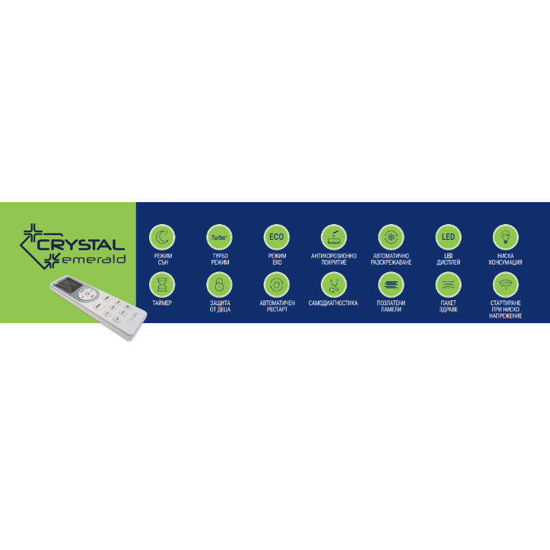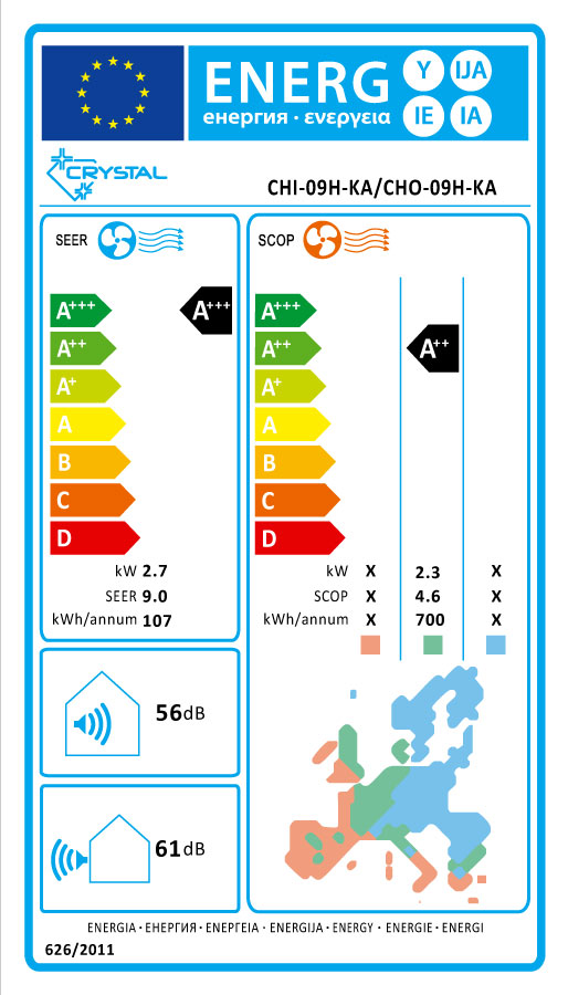 | Охлаждане | Мощност (мин. – макс.) W 2700 (800 – 3200) 3500 (1000 – 4000) 5200 (1500 – 6300) 7000 (1600 – 7800) Консумация (мин. – макс.) W 590 (170 – 1400) 890 (190 – 1500) 1295 (260 – 1800) 2000 (420 – 2760) Ток A 2.6 4.0 5.8 8.9 SEER / EER – 9 / 4.41 8.5 / 3.93 7.8 / 3.86 7.9 / 3.50 Енергиен клас Cool A+++ A+++ A++ A++ |