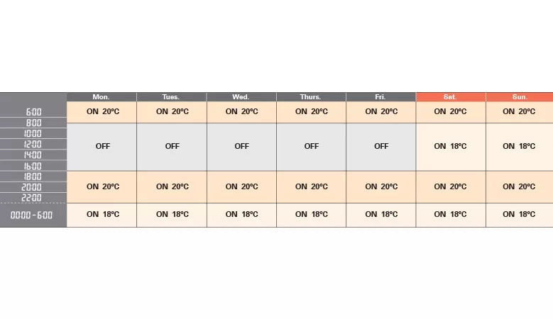 Седмичният таймер позволява да настроите желаните температури и време за стартиране / спиране на работата чрез обособените на дистанционното бутони.